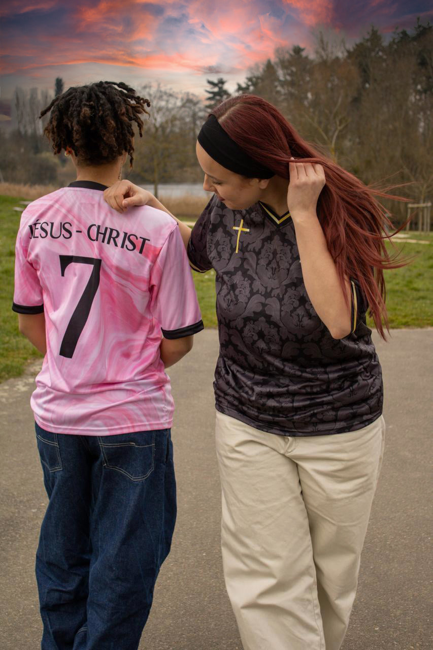 Arborant le nom sacré de Jésus-Christ dans un style élégant et moderne, le maillot Divine Jersey incarne la passion du sport et la force la foi réunies en une seule pièce distinctive.